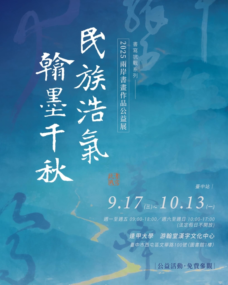 為紀念抗日戰爭勝利暨台灣光復80周年,中國宋慶齡基金會、北京書法家協會及台灣中華翰維文化推廣協會、逢甲大學漢字文化中心等兩岸合作夥伴,邀請兩岸藝術家創作書畫作品,舉辦兩岸巡回展覽。