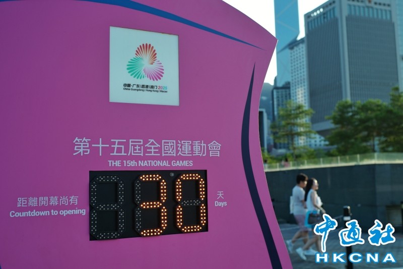 圖為香港金鐘添馬公園設置的全運會倒計時牌顯示距離開幕尚有30天。香港中通社圖片