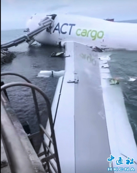 香港國際機場10月20日凌晨發生事故,一架從迪拜來港的貨機懷疑衝出跑道與一輛地勤車相撞,造成2人死亡。消息指,死者分別是地勤車司機及乘客。出事的貨機航班編號EK9788,凌晨約4時降落期間,懷疑衝出跑道,部分機身墮入海中(網絡圖片)。 香港中通社圖片